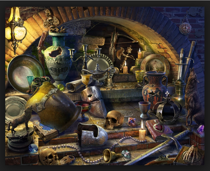 36 crystal Arrowhead (?) 66 assorted silvered keys Canopic Jar, Cursed Seal, beating heart